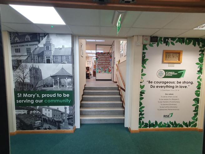 St Mary’s is situated in the market town of Melton Mowbray. It is a busy and thriving town with a mixed demographic. It is a growing community facing modern pressures. Our school vision encourages us to look towards what is the right action and always act in love and compassion. We use this advice in all situations, every day. We show that we act in love by the way that we teach, the way decisions are made, the way we speak and act towards each other, the care and ambition we have for one another. We show our love for the wider community by sharing in acts of worship, selfless action (charity) and other expressions of Christian togetherness.